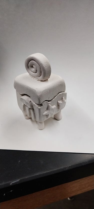 Students continue to apply basic ceramic techniques as they create a container that is culturally meaningful to them. They demonstrate skills through slab and coil building, as well as other sculptural methods, as they explore cultural and personal identities through artistic expression.