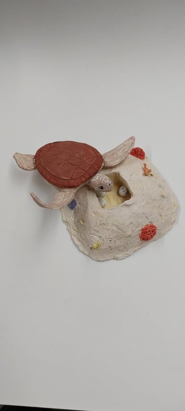 Students learned what designer toys are and created an original 6-8 inch designer toy based on a self-chosen theme. They incorporated at least one pattern/texture and used the three hand-building techniques: slab, coiling, and pinch pot methods. Their final project has to be a hollow, smooth, and detailed clay sculpture that can stand on its own.